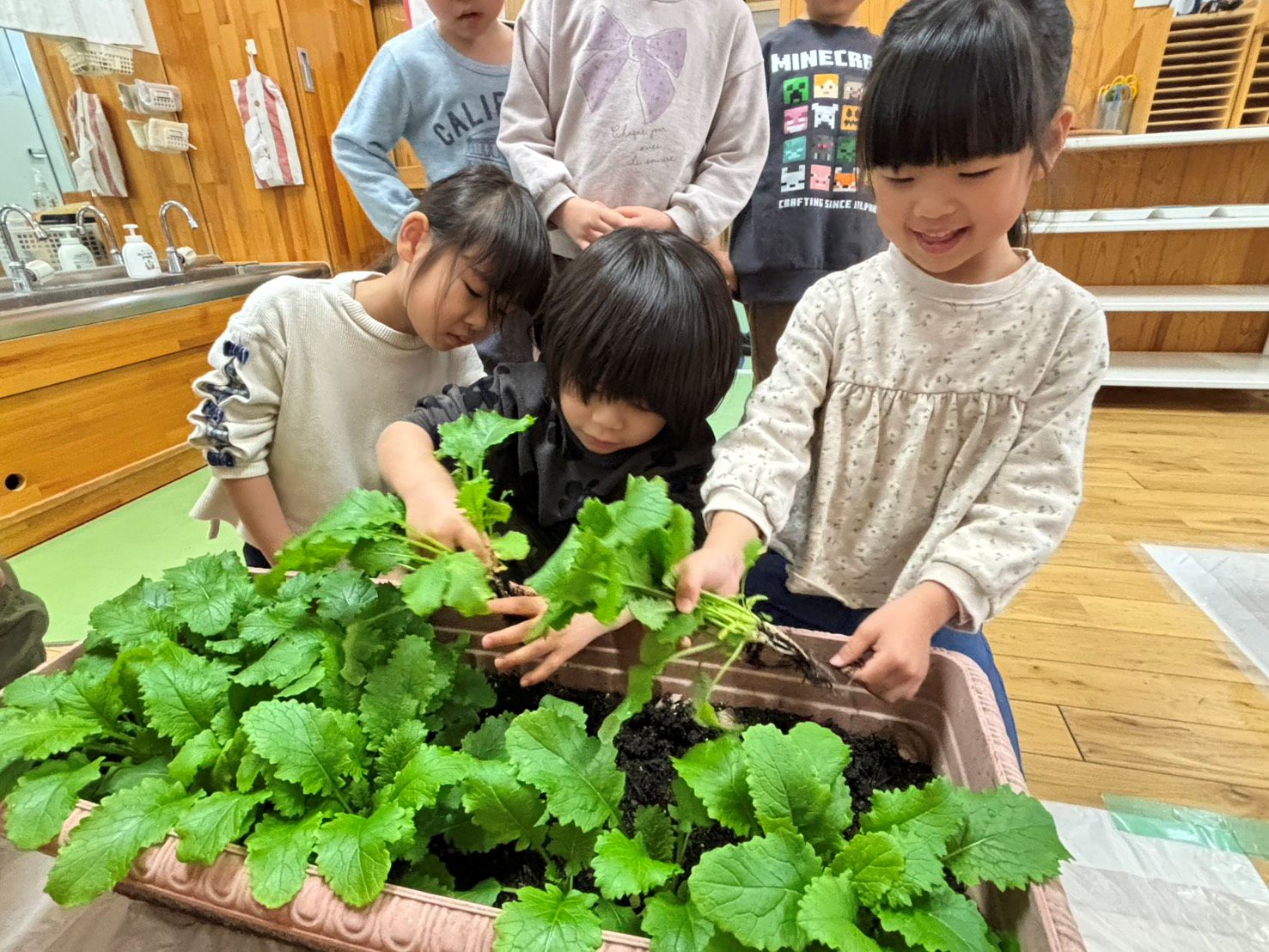 年長クラスはほうれん草の小さな種をまきみんなで育ててきました。